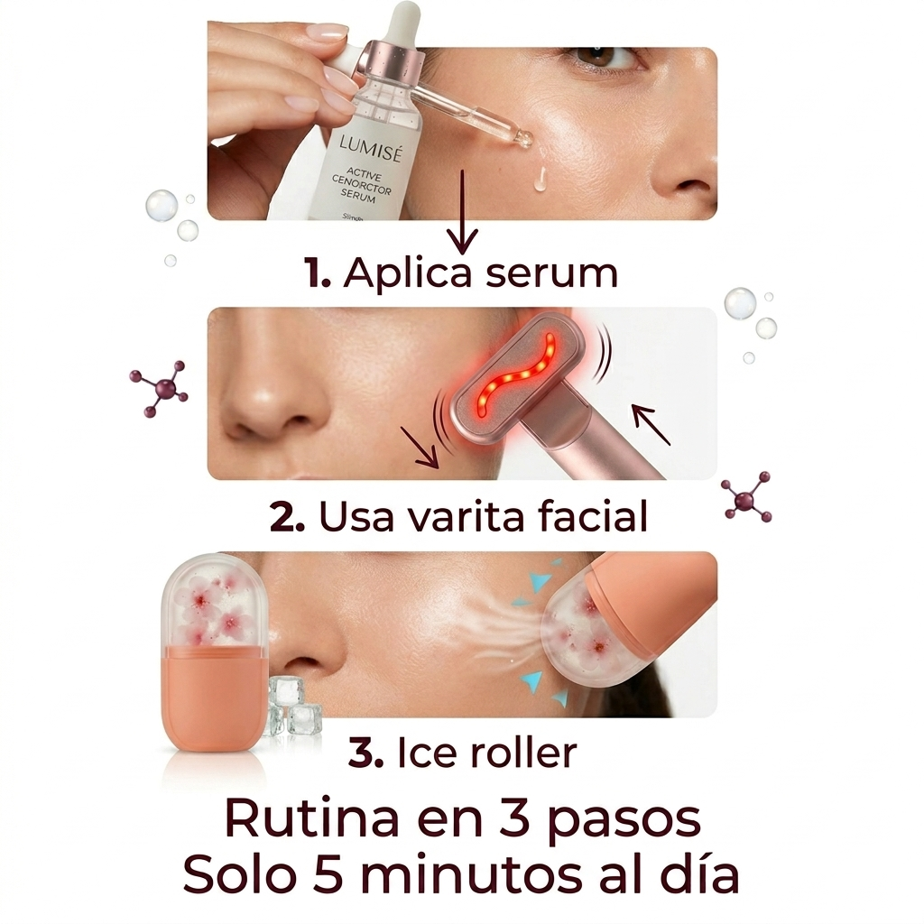 Microcorriente + luz LED + vibración que activan tu piel y mejoran los resultados.